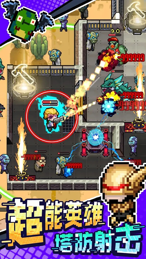 超能防御是一款像素塔防类割草射击手游。玩家进入游戏后将扮演一名幸存者,在废土世界进行不断的探索和战斗,帮助一个一个避难所建设抵挡怪物的防线,消灭入侵的魔物,收集物资,提升自己的战力,保护好能源水晶的安全,成为废土之地的救世主,最终建设一个美好的家园。