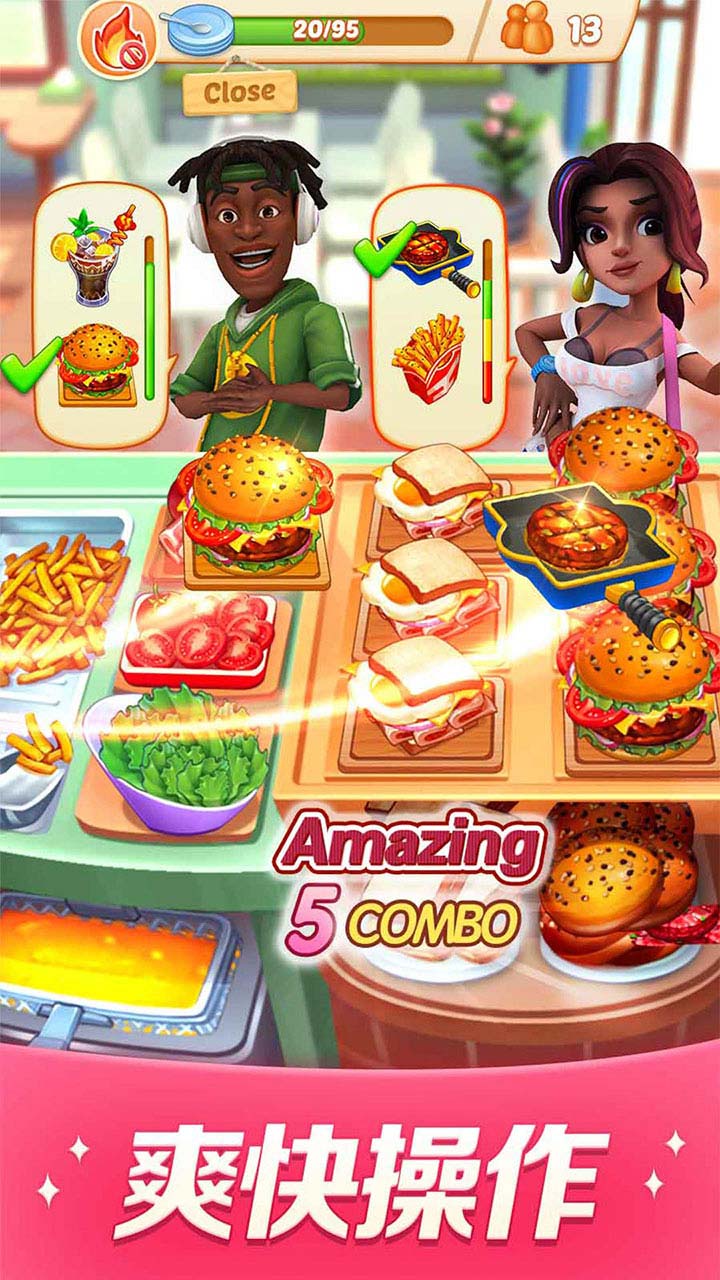 独特玩法:连连上菜触发烹饪特效,助你更快过关;