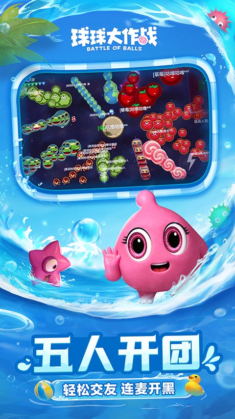 比如在自由玩法中,每名玩家开始游戏后即进入一个房间,控制一个小球吞噬道具,并吞噬比自己小的玩家,成为游戏中的大神玩家,在五人团战中,玩家往往要两对合作,一人打野,辅助及时补球。如果自己的球不够大,视野不够,可能会被敌人“螳螂捕蝉,黄雀在后”,即吃掉对方的球后,因为分身太多,被上面一个大球下来将己方全部消灭,类似的情况保证了游戏在玩法方面的乐趣,除此之外游戏也采取了常见的赛季设置,每个赛季会评出全球榜、地区榜中排名最高的玩家和战队,并赋予一定奖励。值得一提的是本次小编为各位小伙伴带来的是球球大作战无实名认证注册版,登录即可畅玩,感兴趣的小伙伴还在等什么,快快来下载体验吧!