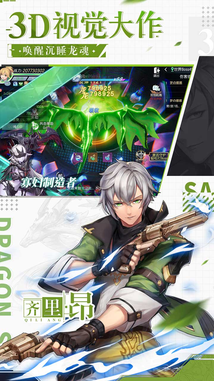 3、百变龙魂,炫彩技能 龙魂多重进化后可获得独特的龙魂形态以及多种酷炫技能。