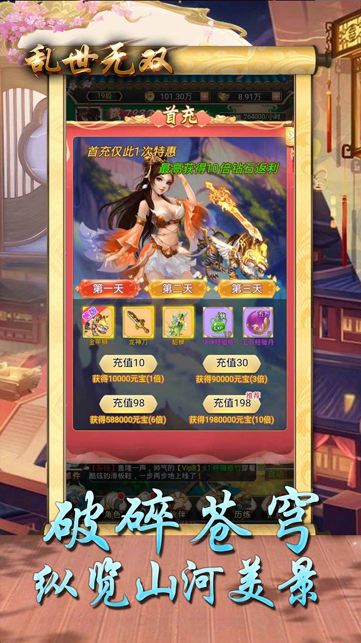 乱世无双OL果盘版是一款的仙侠题材的回合制手游,精致的画面,享受丰富特色的操作,完成属于仙侠世界的PK场景,感兴趣的玩家赶紧来下载乱世无双OL果盘版试试吧。