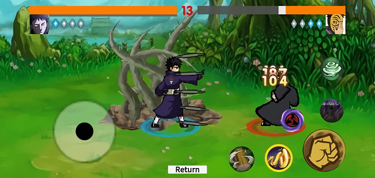 由玩家自制的趣味火影格斗类小游戏,玩家可以选择火影忍者里的角色进行闯关,各种火影人物任你选择,而且每一个关卡里都有着强大的对手。在不同的场景开始你的1v1格斗之旅,热血的近身格斗,炫酷的技能特效千万不要错过。