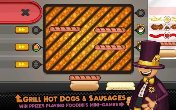 据客人需要制作美味的热狗,顾客多的时候,要用便笺把他们的要求记录下来,热狗制作完成之后再把便笺贴上去,这样就不容易弄乱。一开始先按照提示一步步来完成吧,等到熟练的时候就可以应付更多的顾客啦!