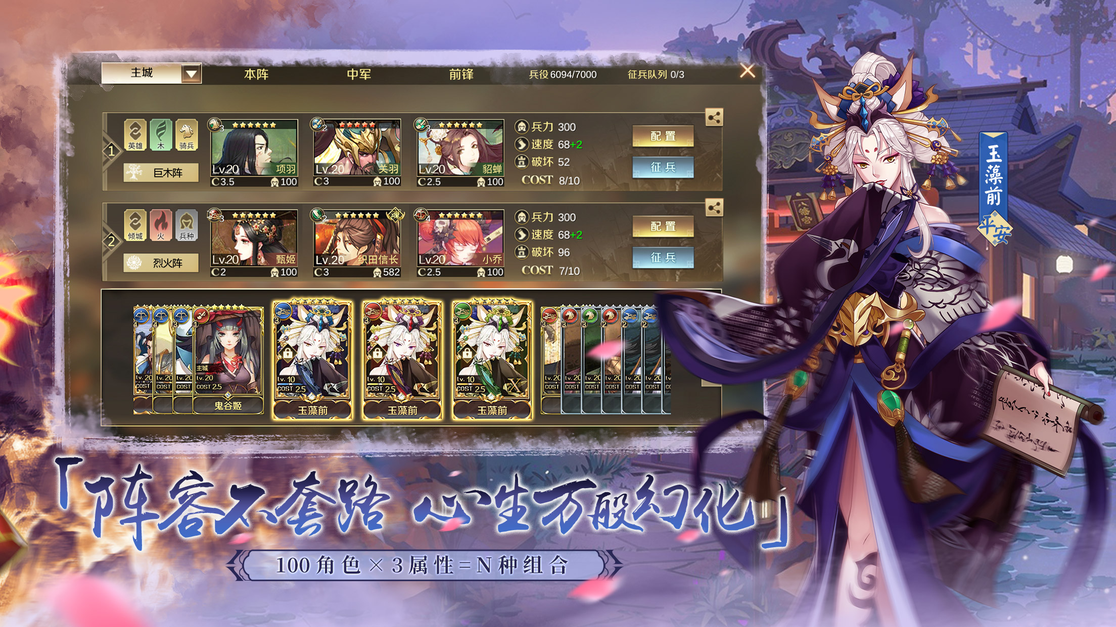 1、每一位武将都有着自己的属性,玩家可以选择战斗出场的顺序和搭配。