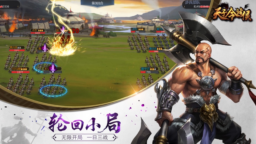 创新国战玩法,策略布局,冲锋陷阵。场面恢弘,采用完全真实的“三国”历史为背景,将让玩家有重回一千八百年前的感受。在《天子令诸侯》中,玩家随着游戏的深入,可以逐步领略到三国鼎立局势形成的过程,领略到三国古战场的磅礴大气,体验真实热血的战斗场景。