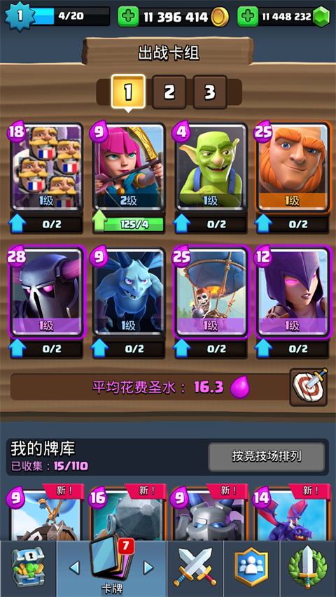 4、打造并升级您的卡牌收藏,包括《Clash Royale》皇室成员和数十个来自于《部落冲突》的部队、法术和防御设施;