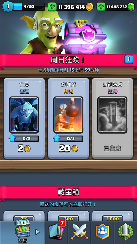 2、点击左下角宝箱,会刷新一些卡牌等其它物品可以购买。