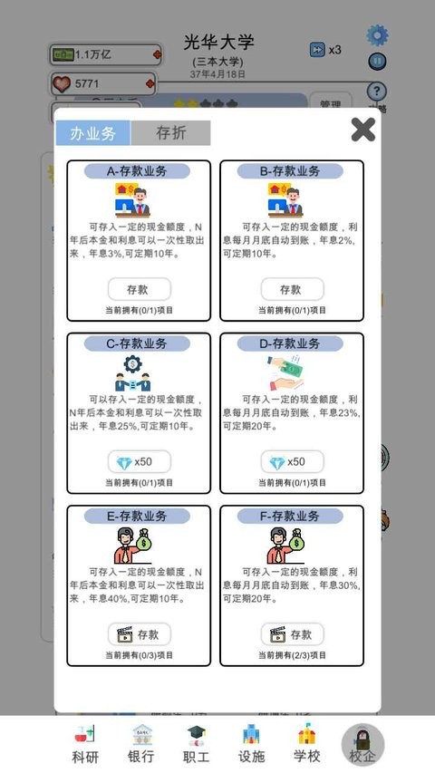 3、增加了很多安置功能,可以挂机赚钱,需要赚钱才能成为校长