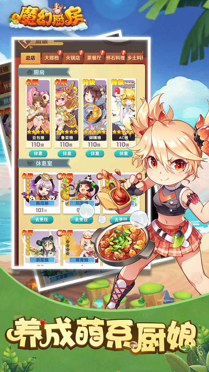 想拥有一家专属于你的餐厅吗?无需爆肝,动动手指挂挂机,即可获取大量金币爱心!无需重氪,就能解锁不同风格的可爱厨娘,陪你一起收集各式美食菜谱,下厨房,送外卖,经营你的餐厅!还有多种风格的家具装饰,等你随心装扮,打造个性餐厅!想减压?来这里!