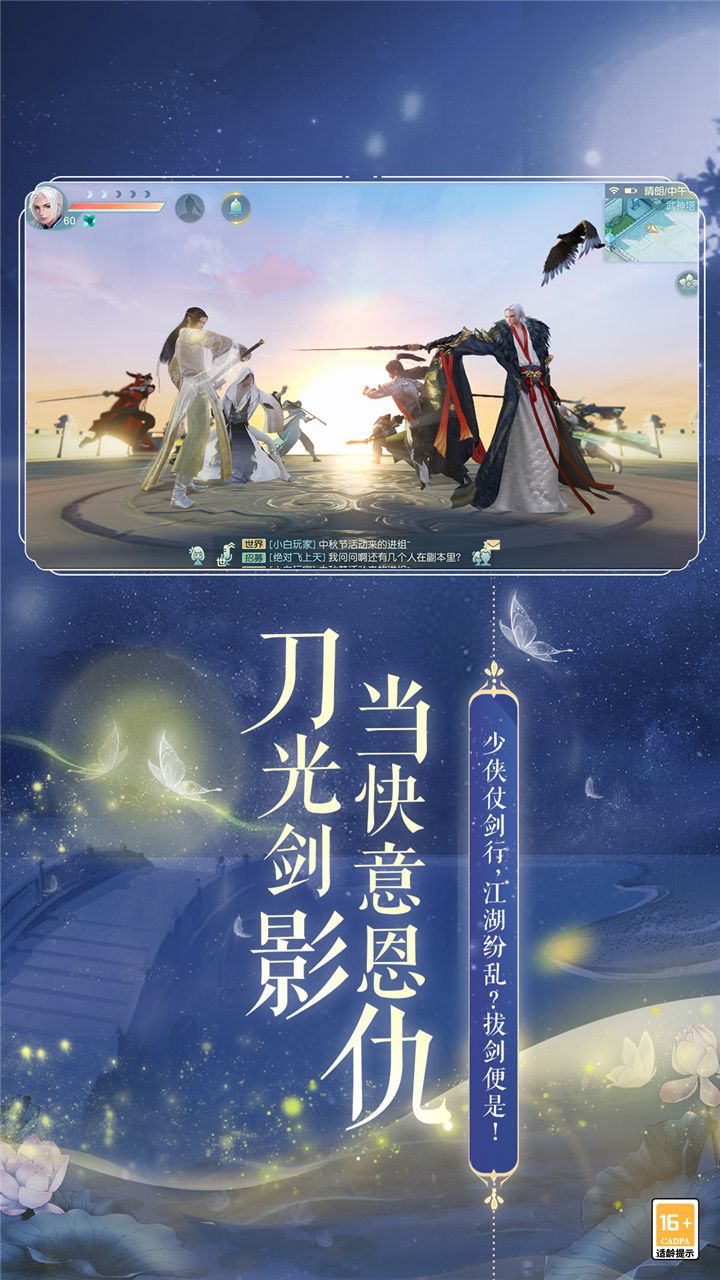 我与我们的剑与江湖——七天一季的心跳冒险,心动上线!花剑江湖,鲜衣怒马、少女风华万千,少年仗剑天涯!欢迎加入花有情、剑亦有意的《网易武魂:花与剑》..... 江湖 花与剑 一个新身份,一段江湖行 江湖路上,走走停停。腹黑霸气的小王爷,温润如玉的暖书生,与剑相伴、天涯独行的剑客,醉酒高歌的狂士,风华绝代的御姐,纯真活泼的小师妹...此间之人,人人都有故事,人人皆可撩可交 湖心的小舟上,与谁把酒言欢。