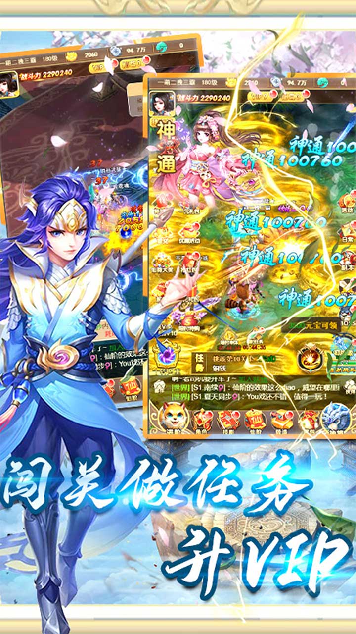 这是一款Q版浪漫修仙游戏,跟随主线任务让主角不断成长,一路斩妖除魔击败BOSS提升主角战力。在主角修仙养成的路上还有神将相助,可以与志同道合的道侣相识同行,问鼎仙界。游戏玩法超多超给力,光是pvp玩法就一只手都数不过来,有遭遇战、竞技场、护送美人、擂台霸主、跨服等一系列活动,打败其他玩家获得稀有奖励,占据排行榜受万人敬仰! VIP上线就送,闯关能升级VIP,海量VIP福利随手领!更能学酷炫神通技能,全屏输出伤害爆表。登录还送称号、符文,大量元宝可领! 推进主线还能获得仙宠,超萌仙宠伴您修仙之路,不再是一个人的修仙!