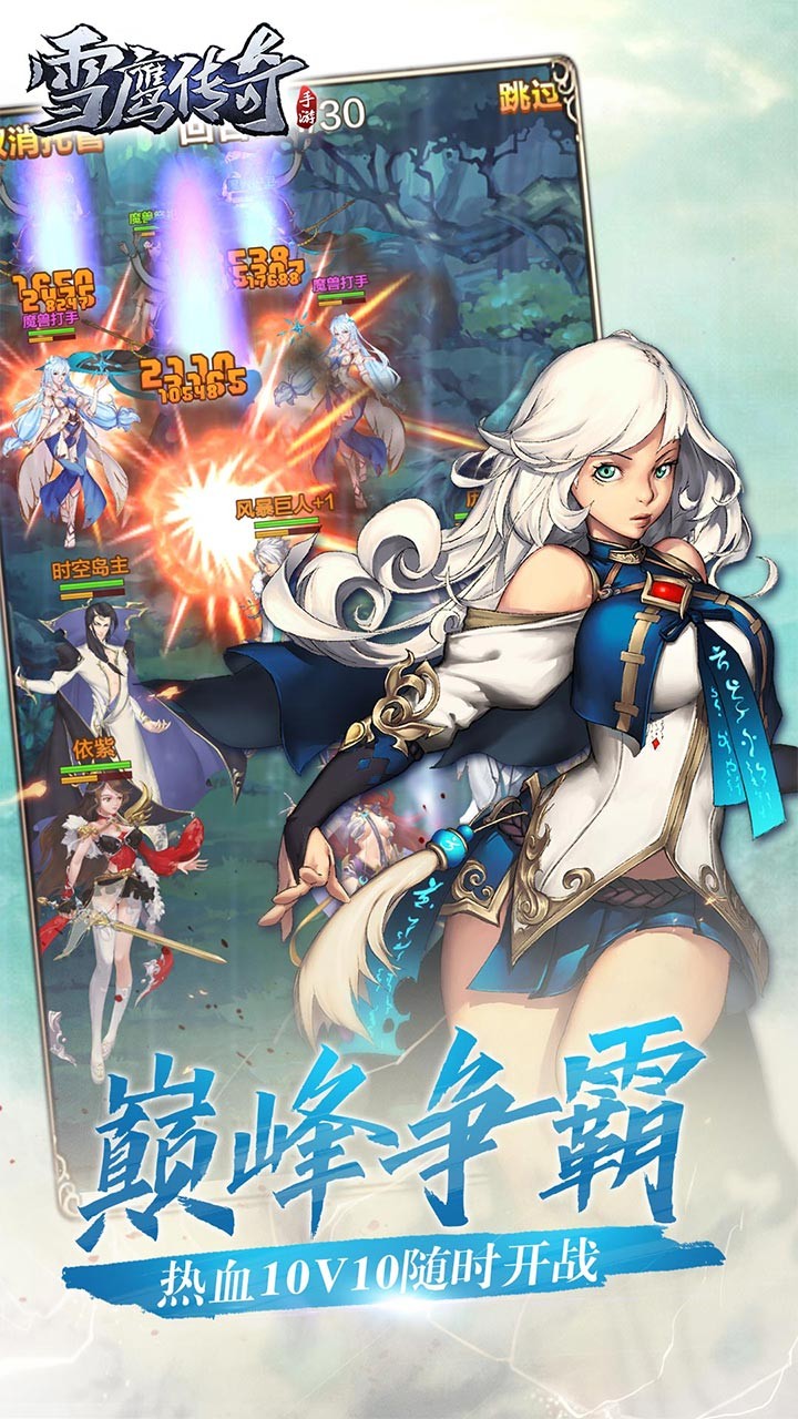 引领强者进入前所未有新境界,体验强者荣耀高光时刻!《雪鹰传奇》开创全民真动作回合手游新篇章。这一次,你将奇迹加冕,成为大乱斗中的胜者!·天命超凡 2017年度魔幻武侠手游巨作·全景战斗,使战场再无局限,从南到北生死厮杀只为决出最后胜负。年度魔幻绝非虚名,置身魔幻武侠大千世界就在此时此刻。·玄幻武侠 诛神魔入超凡平定三界·游戏融合国风千古传承武侠精华,更融合玄幻、魔幻等多类潮流元素,让脑洞无止泻。游戏中不仅能自由选择英雄集结阵容,更可上天入地单挑神魔,获众人敬仰。