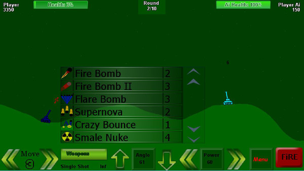 该游戏是回合制,其中在2D战场每个玩家控制情绪所有者大炮坦克。通过旋转坦克的炮塔,选择正确的部队和武器你的目标是,直到他们耗尽健康和模具损坏你的敌人。但是要注意,因为这些武器可能会在许多方面可以用来创建许多有趣的场景,只是你的计划和技术人员能够给予你的胜利。