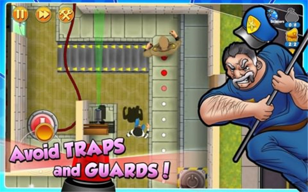 《神偷鲍勃》系列游戏相信很多小伙伴们都玩过,那在这里小编就为大家带来这款的第二部作品即神偷鲍勃2官方版。本游戏不仅依旧延续了前作的剧情,而且在本作中将扮演继续神偷鲍勃进行盗窃,同时该游戏采用了俯视角的设计,在屏幕左下角为虚拟摇杆控制神偷的移动,右下角则为跑动键可以帮助快速逃脱,另外戏中会有着大量幽默有趣的故事情节和行窃时的搞笑遭遇。此外,在游戏内的不同任务中鲍勃潜入的房子都各不相同,不但有轻松简单的民居也有保安严密的警察局,因此玩家需要观察好房间内走动或巡逻的人计算好潜入路线才能神不知鬼不觉地偷出任务品,并且玩家们还可以像忍者一般在木箱、花盆、地板裂缝或者是马桶里进行躲避。不仅如此,在这款游戏中还拥有非常多的道具供你使用能够帮助你更快的通过关卡,同时更是有着丰富的游戏剧情和特色的隐藏的游戏任务让玩家们能够极致体验的不一样的游戏乐趣!
