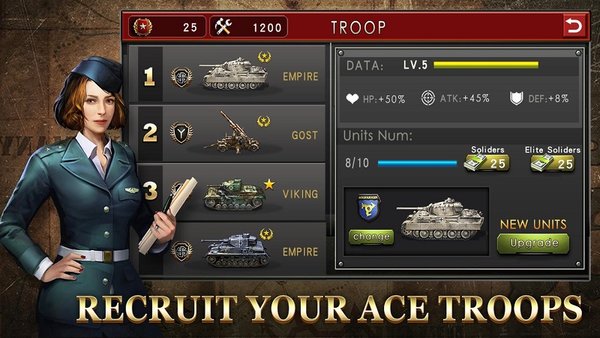 世界著名的历史将领,你可以用你的魅力将他们吸引到你的麾下。每个名将的独特属性和特殊技能可以帮助您提高部队的战斗能力。