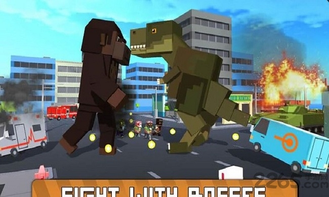 1、在游戏中玩家将化身为一只巨型恐龙,你需要控制恐龙袭击城市。