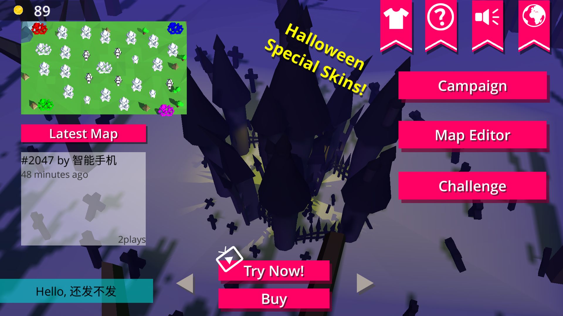 《War Of Castles城堡征服者》是一款横版卡通风格设计的策略战争竞技类手机游戏,灵感来自Flash小游戏《古文明战争》(和很多同类手游)。玩家要控制地图上的红色城堡, 派兵占领敌方城堡。但是当你出兵之时,其他城堡可能会乘虚而入,所以一举一动都要十分谨慎。喜欢策略游戏的玩家可以试试哦。现在这种拉兵占城的游戏挺多的,如果玩过同类型游戏的话,想必早有自己设计地图的冲动吧!在这个游戏中你可以大展拳脚,设计上传自己的地图,和其他玩家(还有作者我)切磋切磋。