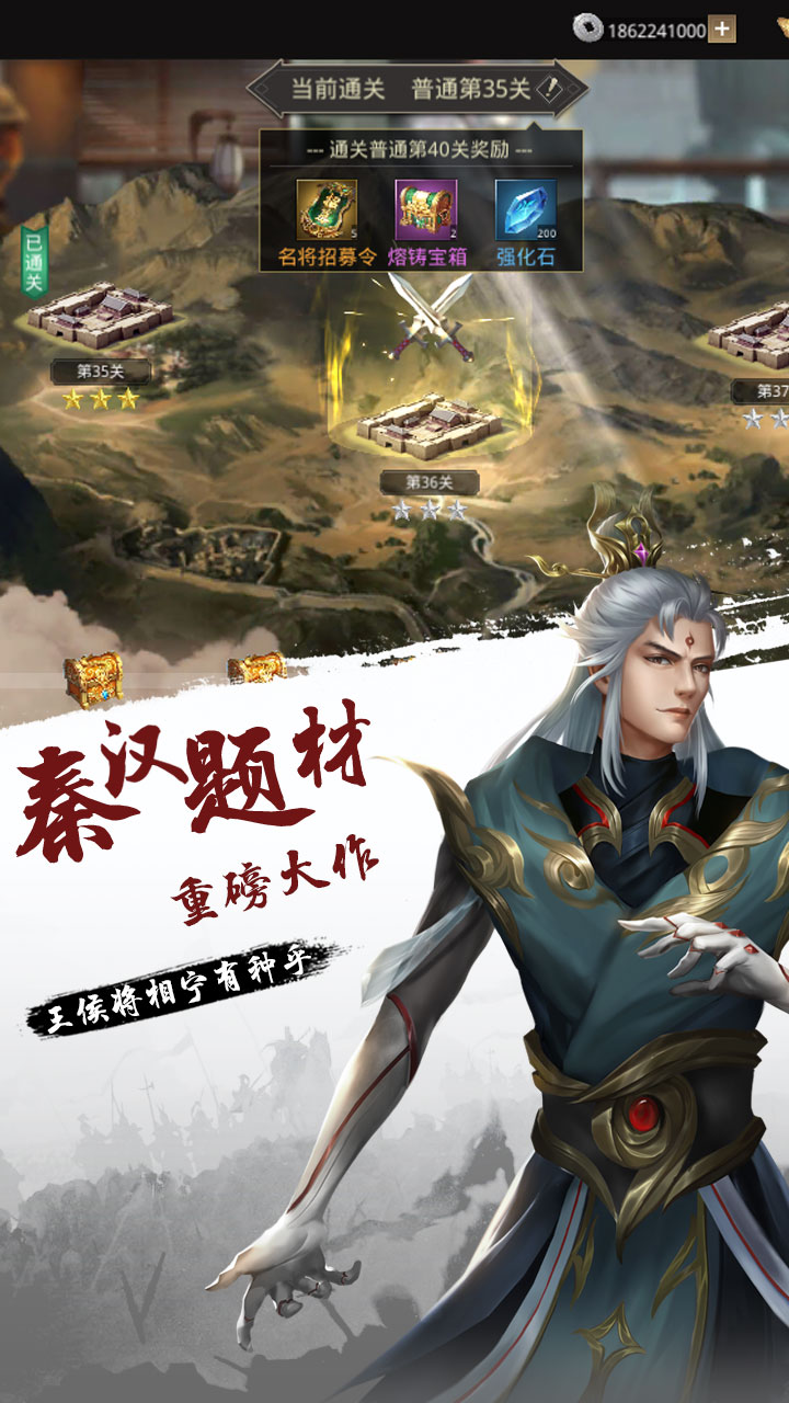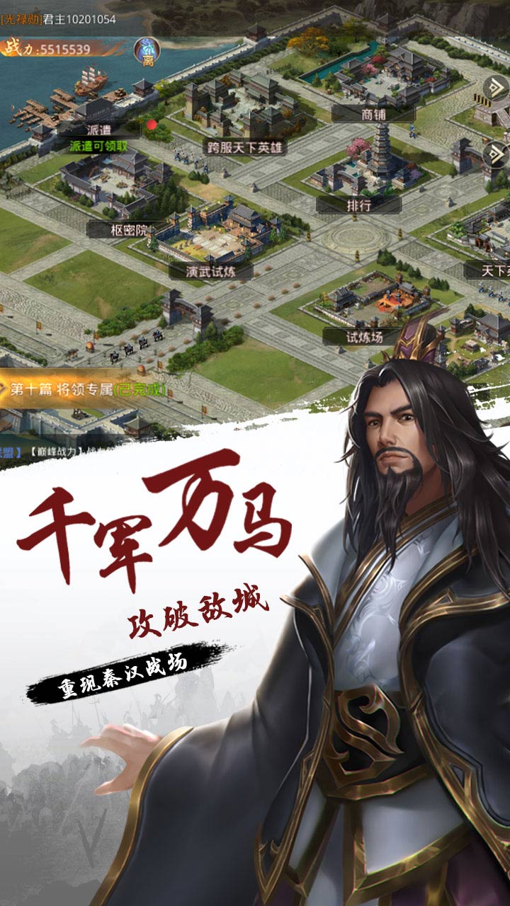 独特设计的战斗机制与攻城机制,可轻松搜集历史名将,与多人对战,攻城略地乃至一统天下,提升官职,封王称帝。