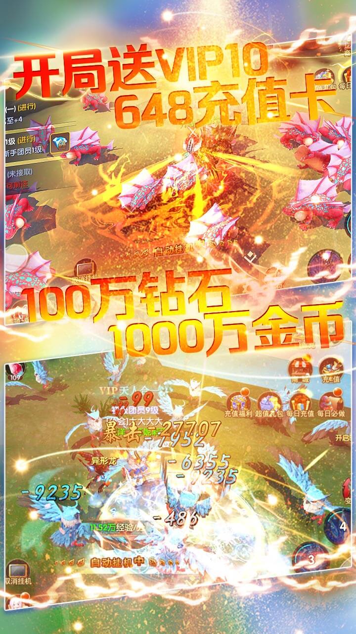 《炫龙记》拥有三大职业,战士、刺客、法师,经典MMO玩法,经典职业搭配。登录即送VIP10,钻石100万,金币1000万,648充值卡直接送,更有海量充值卡无门槛免费送!极品红装0元送!还不赶快带上下伙伴,一同进入龙族的世界,一起上刀山下火海,屠恶龙,作英雄!拿起宝刀,踏上征途,你就是下一位屠龙勇者,炫龙世界等你来战,成就你的屠龙霸业!