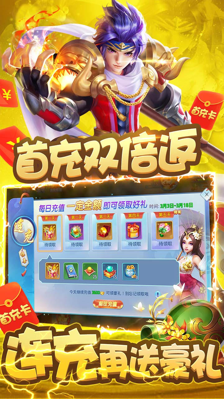 1、神话竞技有回合制的传统方式,古典文化华丽来袭,剑气成就任你逍遥,三世争锋点燃无极战火。