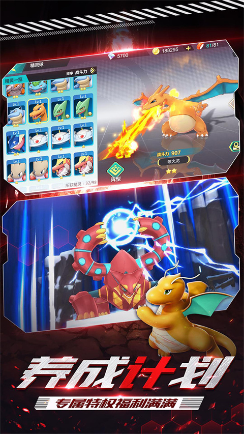 阵容精灵:凤王、超级喷火龙X、喷火龙、索尔迦雷欧