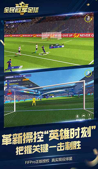全民冠军足球是由腾讯首发的正版授权经营的足球手游,内拥有63个国家协会及百家俱乐部,有着五千名现役的球员肖像,游戏拥有着动作捕捉技术,会在关键的时刻放大人物在射门的时候的精彩影集,由真实球员参加动作的录制。高超的3D建模和先进的引擎渲染为游戏呈现出精彩时刻,创新的玩法让玩家畅享绿茵的激战快感,游戏在于真实的选拔球星培养,可以锻炼各位在游戏中的精确的布局策略,组建属于自己的俱乐部,让玩家可以带领热爱的球队走上冠军之路。让玩家感受到足球的魅力,喜欢玩足球的朋友们一定会喜欢的。相信我国的足球能够蒸蒸日上,能够踢到决赛中。