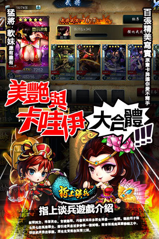 指上谈兵是一款有趣的策略战争游戏,玩家需要操控合适的兵马在合适的地方战胜敌人,各种美艳、软萌的妹子,全部都可以收入后宫。玩法丰富有趣,对指上谈兵感兴趣的小伙伴快来体验下载吧。