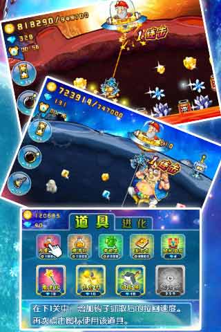 黄金矿工太空版这是一款超经典矿工淘金的游戏。以往矿工都在土里淘金,但是,在地面已经满足不了我们的老矿工,~一起跟老矿工上太空淘金吧!太空更多宝藏等你发掘。