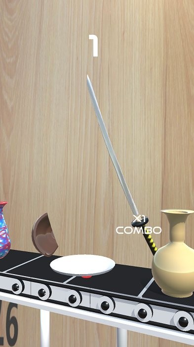玩家需要控制一把武士刀,不断地在传送带上砍花瓶,其中一些会掉金币