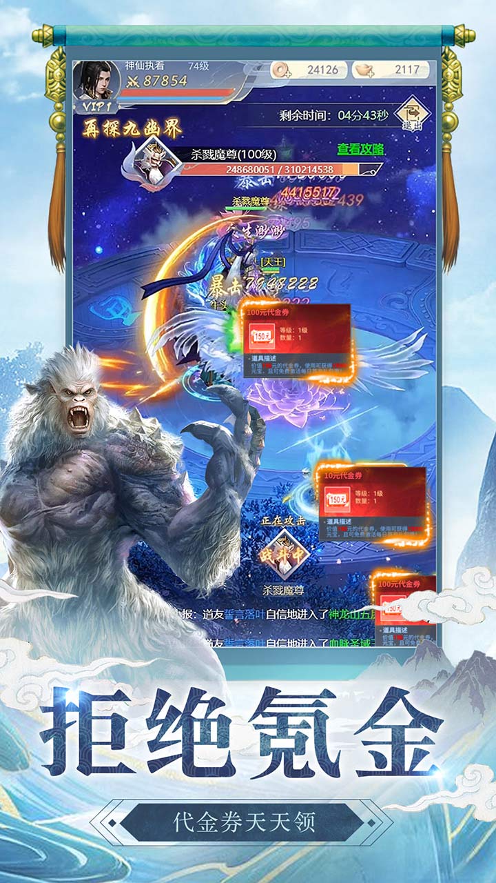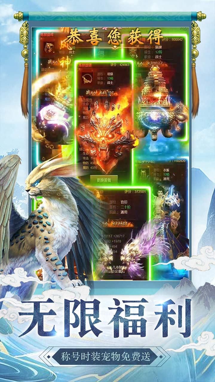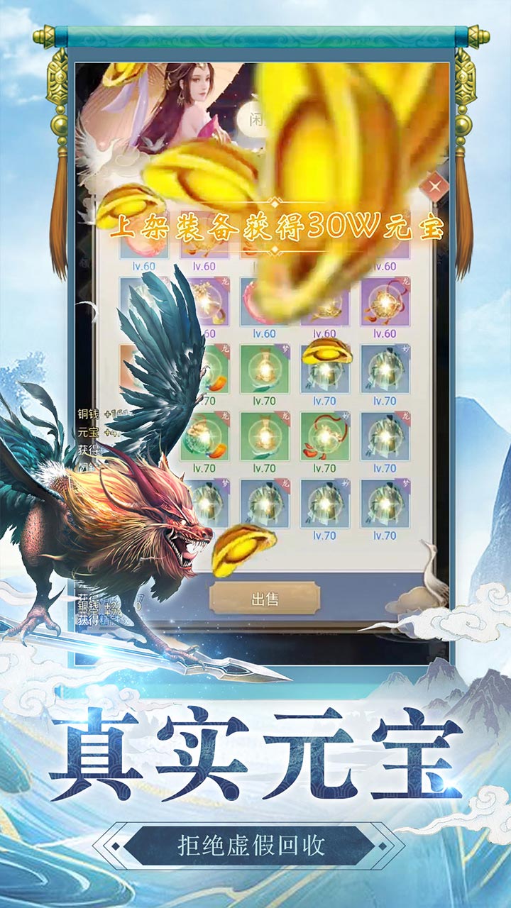 3、帅气坐骑,好看的翅膀,多元化升级角色,逆天进阶的强者,问鼎修仙之路。
