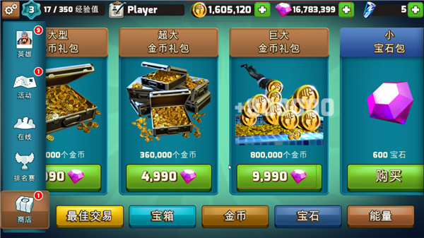 已修改提供大量的钻石,且钻石还可以兑换成金币