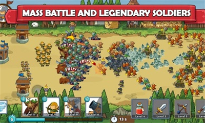 1、各种不同的装备和武器装备能够加强你的军队,持续的提高战斗能力来解决你的对手。