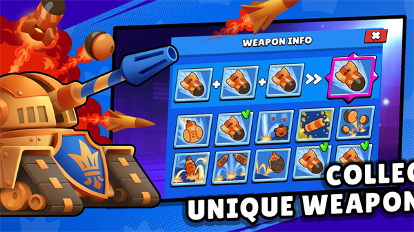坦克之王官方正版是一款策略性十足的坦克射击游戏,游戏采用了回合制的战斗玩法,全新的3D引擎打造,为玩家们带来超棒的视觉体验。多种不同机制的独特武器任你选择,并通过升级坦克,来达到更高的等级,获取新的炮弹。每个炮弹和坦克有不一样的攻击效果,将给你不一样的游戏体验。当你在游戏中点击每个坦克时,都会为你展现不一样的炮弹效果,快来感受花式炮火的洗礼吧!