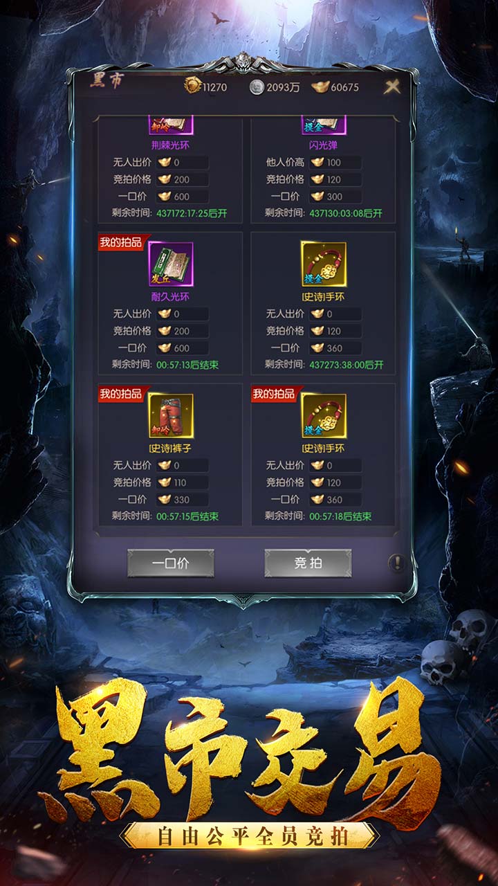 4、自由拍卖行,装备真实回收,元宝全靠赚。