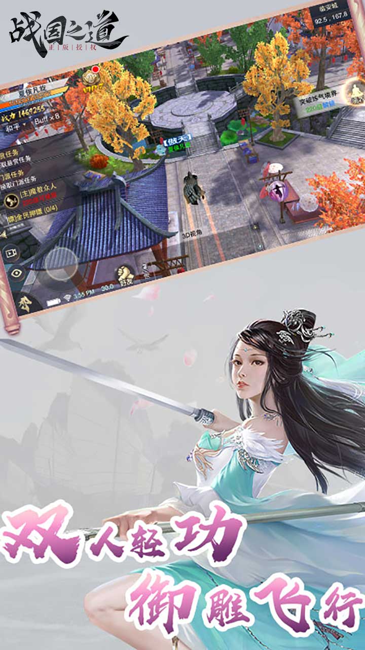 江湖名俊,刀剑生涯,无忌江湖!《战国之道》还原浩瀚大江湖。绝世武林秘籍,伴随群英论剑、武林塔、华山论剑等海量特色一同融入浩大的战国江湖。十大门派、群雄争霸、感受武林与帮派争斗更是每周必不可少的热闹活动。角色可自由切换搭配不同的武学与武器更大大增加PVP模式下的可玩性。更有奇经八脉、武林大会、江湖奇遇、伙伴、坐骑、珍宝阁和时装等诸多趣味玩法,为你打造自由唯美大江湖!