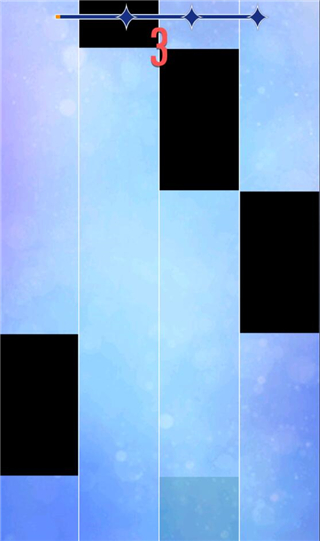1、选择一首歌曲开始,界面会出现四个赛道,每个赛道会随歌曲的乐谱出现黑色的钢琴键,从上向下移动,点击钢琴键就会发出音符的声音,连续点击成功,音乐就会流畅的播放出来。