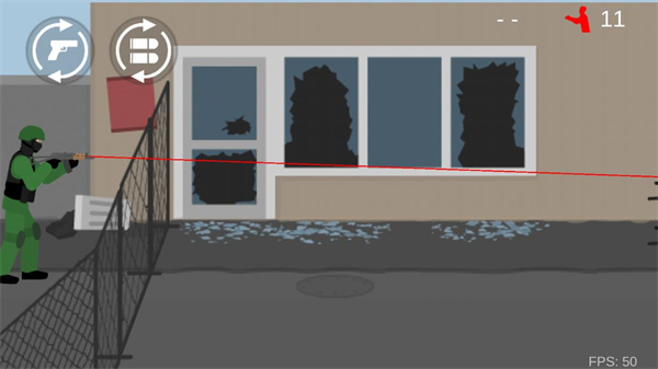 3、进入游戏后,左边控制方向,右边点击控制射击,上方还可以切换枪械、换弹等