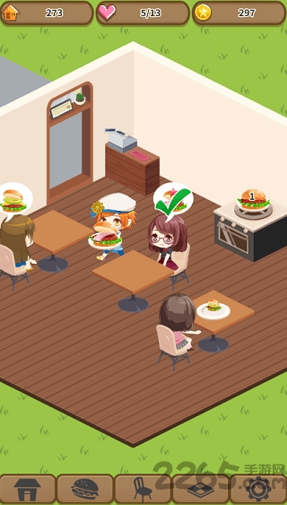1,经营模拟部分:咖啡屋中另有5位帅气的小哥哥负责各项事宜,他们有着各自的剧情,对话甚至有声优配音。咖啡屋一开始只有两组桌椅,完成顾客的点单后能获得金币,可用来购买新的桌椅、吧台,或铺设更多的地板、瓷砖、墙壁等,以扩建你的咖啡屋,容纳更多的顾客光临。还有几种装饰吉祥物,布置在屋里后能获得各种有利消消乐或经营的效果。