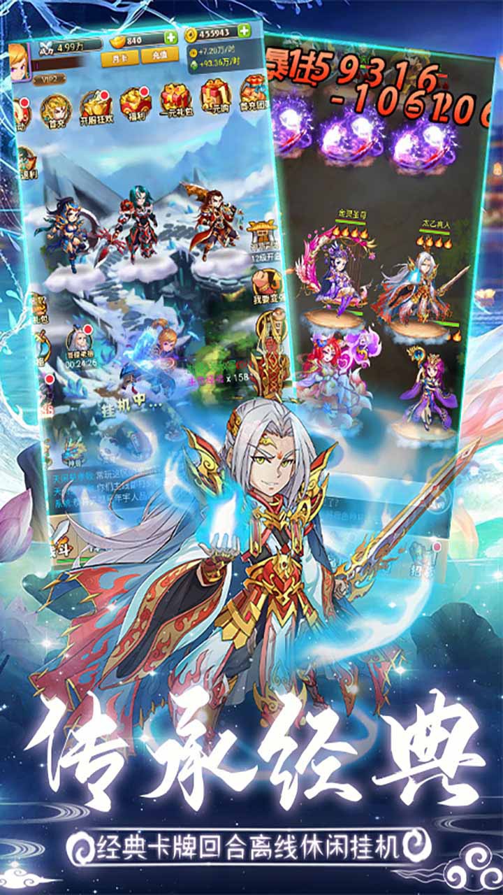 《问鼎封神OL》结合了封神卡牌成长、战斗与休闲挂机的养成体验,玩家不仅能体验到传统卡牌游戏中的策略和养成元素,又能通过挂机自动PK来实现角色成长。游戏以淡水粉色调的画面还原了封神时期的古朴氛围,同时以2D化Q版漫画风格和流畅的骨骼动画对封神名将进行更加细致的刻画。