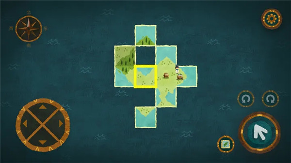 9、将黄色边框选中要移动的地图,点击箭头选定,然后使用左边轮盘来移动地图,地图摆放完成后点击地图按钮即可进入地图中进行探索