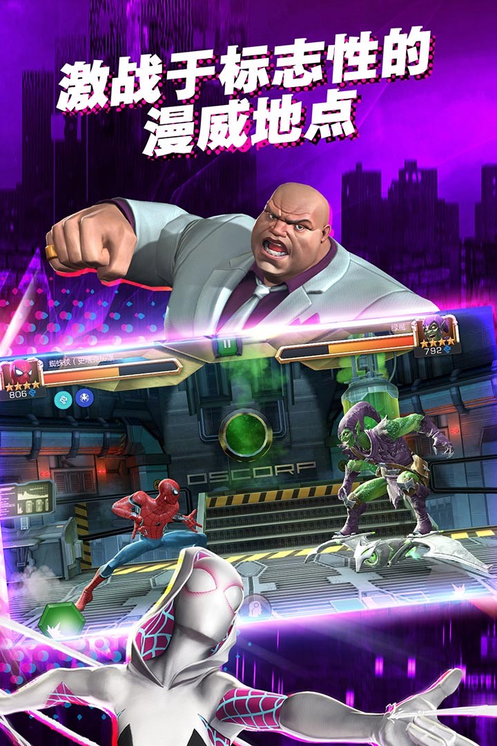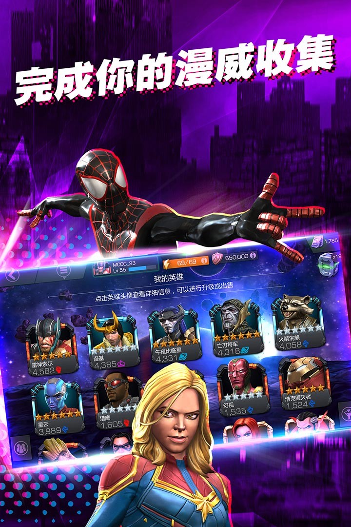 • 用英雄和反派角色来打造一支战无不胜的队伍(可选角色包括: 钢铁侠,浩克,金刚狼,风暴女,星爵,卡魔拉,蜘蛛侠,死侍,万磁王和冬兵等)