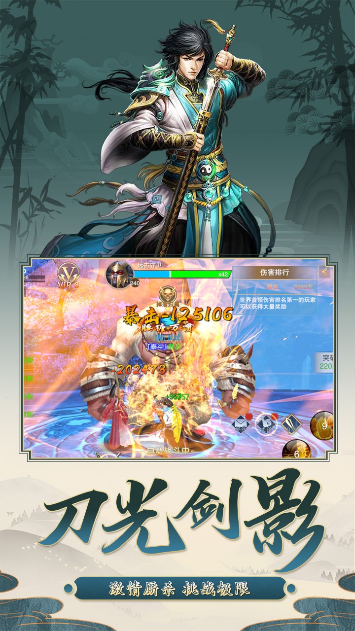 2.上线就可以领取到最稀有的套装武器,参加世道跨服赢取称号荣誉;