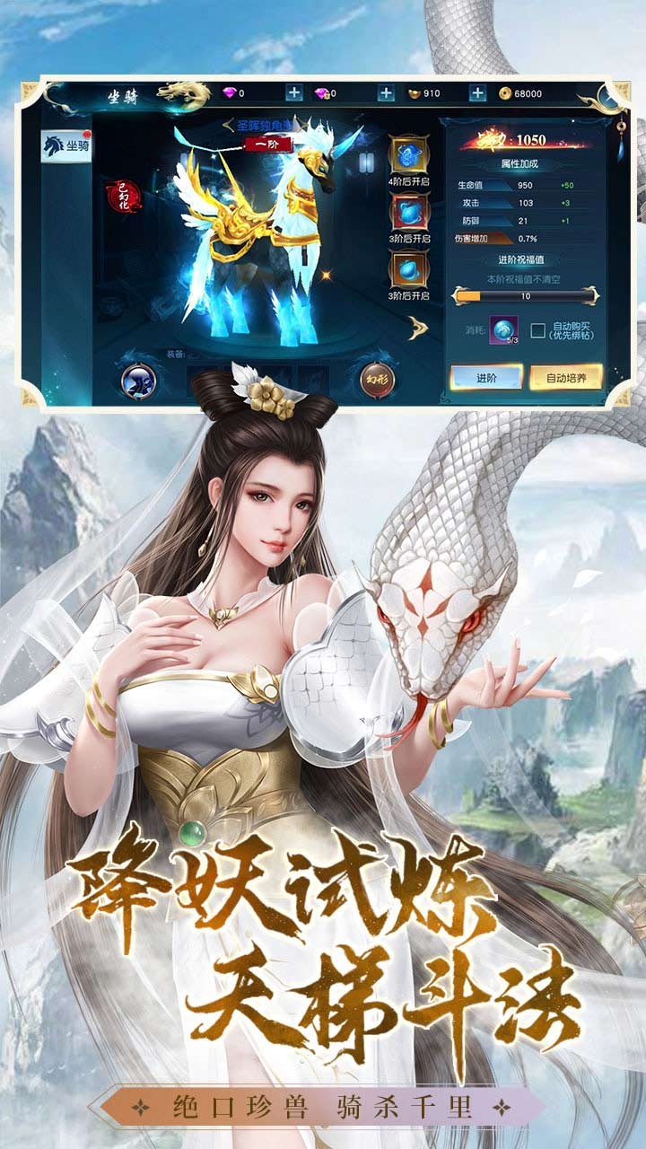 上古神兽:跨上神兽腾云驾雾,霸气坐骑进阶升级;