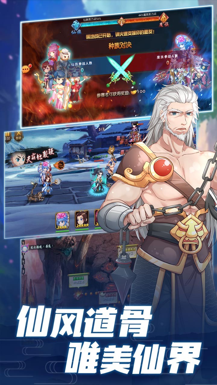 1.简单操作即可发动爆发性的技能!活用连锁技能来一个连环暴击!结合武将技能组成最强队伍战略联合各技能创造专属绝技!