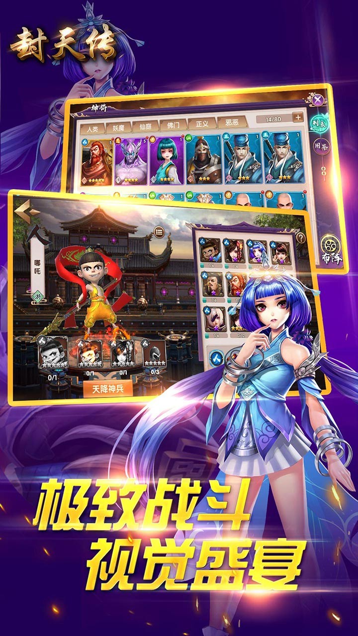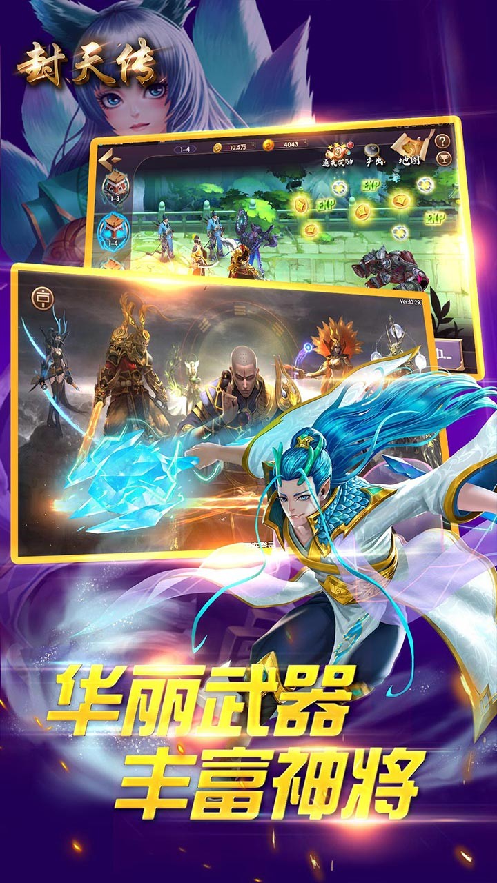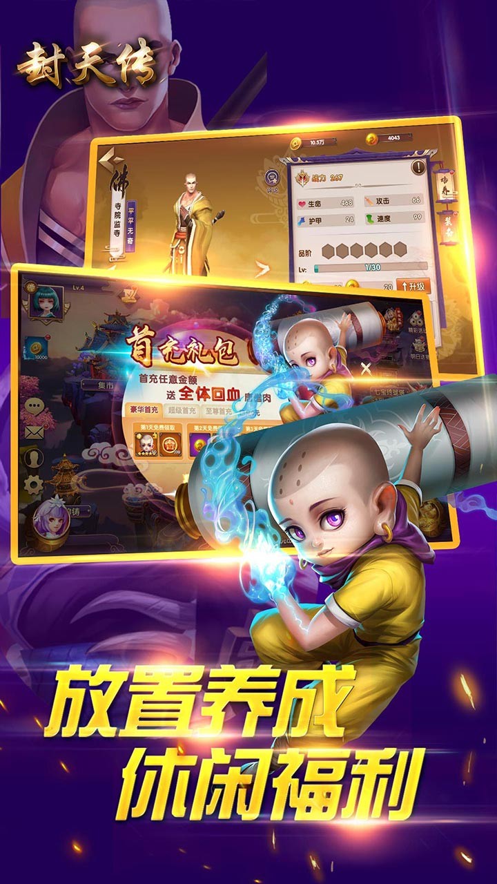 封天传OL果盘版是以一款放置类玩法的RPG手游,奇幻的游戏场景,各类丰富的武将系统,任你招募,以数十种不同的职业阵容搭配,将你的西游冒险之旅,增加更多刺激,感兴趣的玩家赶紧来下载封天传OL果盘版试试吧。