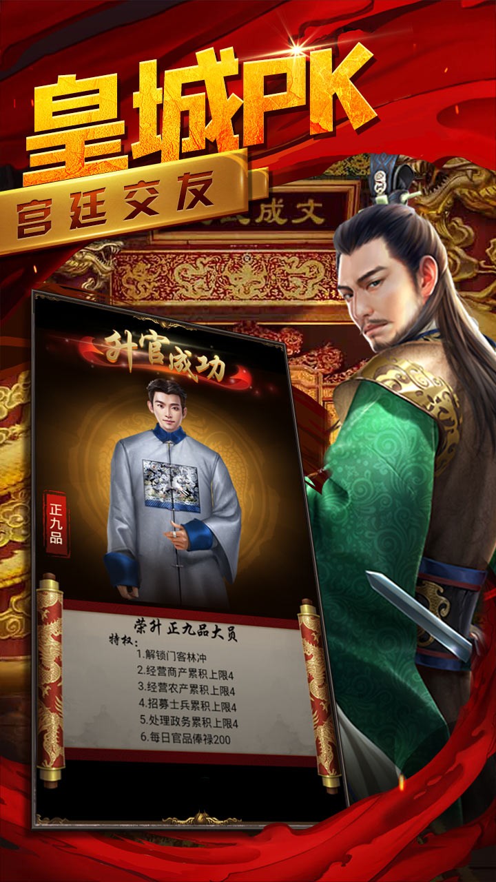 九品芝麻官也有出头之日!完善的官品晋升系统,让你体验封官进爵的快感。大权在握,无出其右!