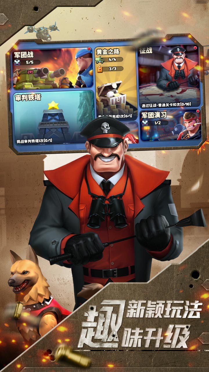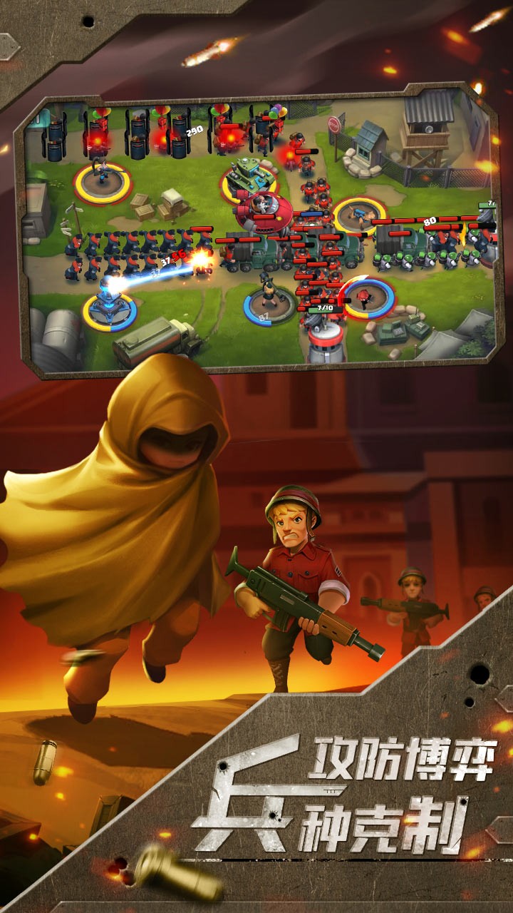 2、丰富的关卡挑战,化身将领策略指挥,炫酷技能,秒杀敌人,加快基地建内,增加火力。