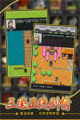 随着剧情的深入,主公可以学习更多的武将阵型与技能,还可解锁宝物特效,战斗方式也还原了童年经典,不同搭配和阵容选择,将收获独特的战斗效果
