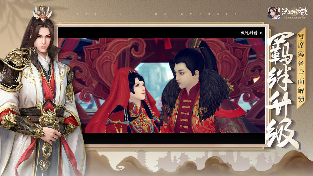 未有如椽笔,光容可得陈。陈玉这个角色让我们一眼就能看出她的雍容华贵、仪态万方。角色身着黑红交织的华裳,搭配上古典雅致的刺绣,腰间美玉、手上的护指以及高贵典雅的古风头饰,将人物的每一处细节都精雕细琢,令玩家可以在游戏中尽情感受人物魅力。