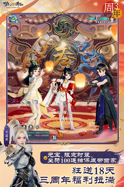 3.三周年礼,登录送元宝!登录即可领取银两、元宝、三周年纪念徽章!